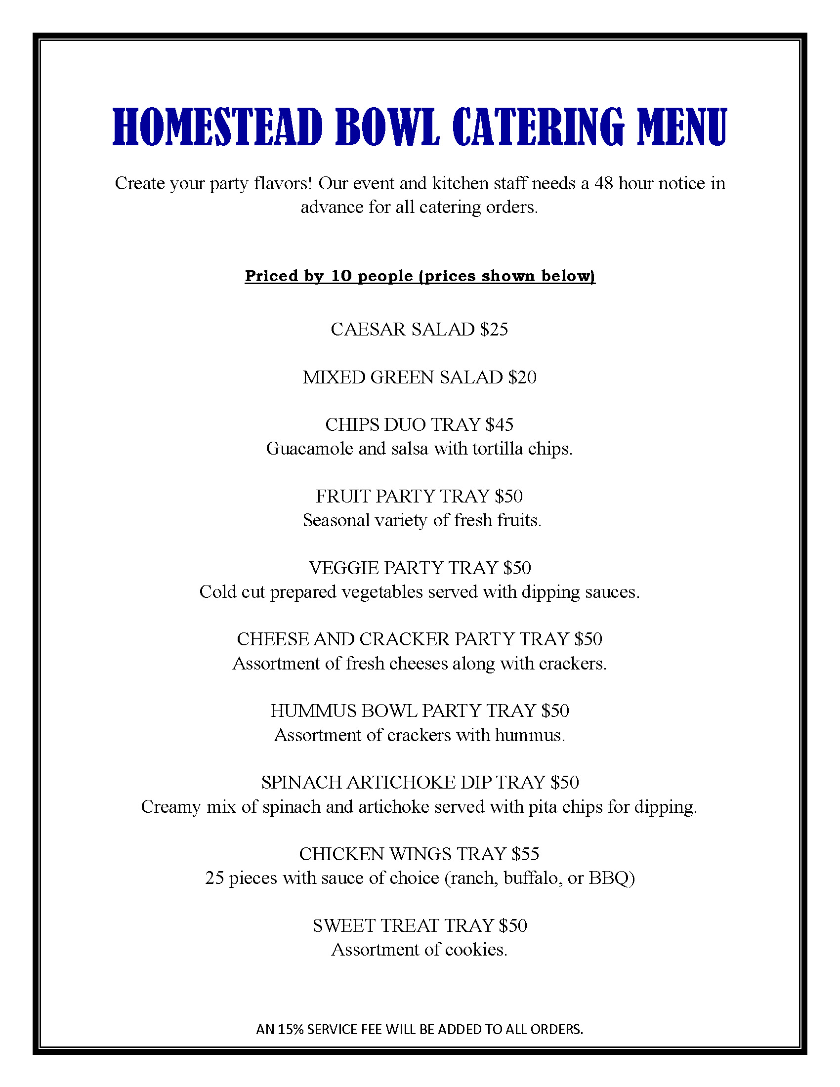 Welcome to Homestead Bowl Catering! A fantastic local destination for delicious Catering and Parties!